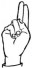 На ћирилици написано ФИЛОТИЈЕ РАЛОВАЦ састоји се из 15 слова [?]. Исписано ћириличном једноручном азбуком за глувонеме: